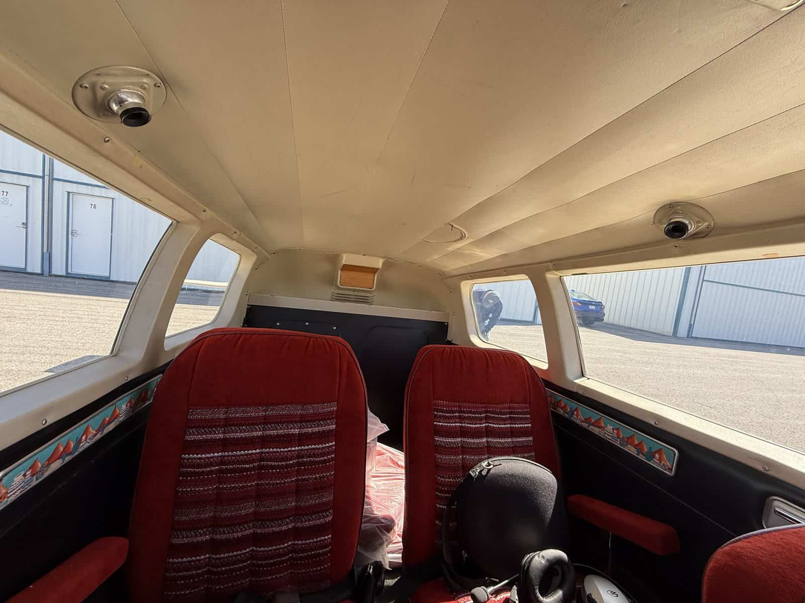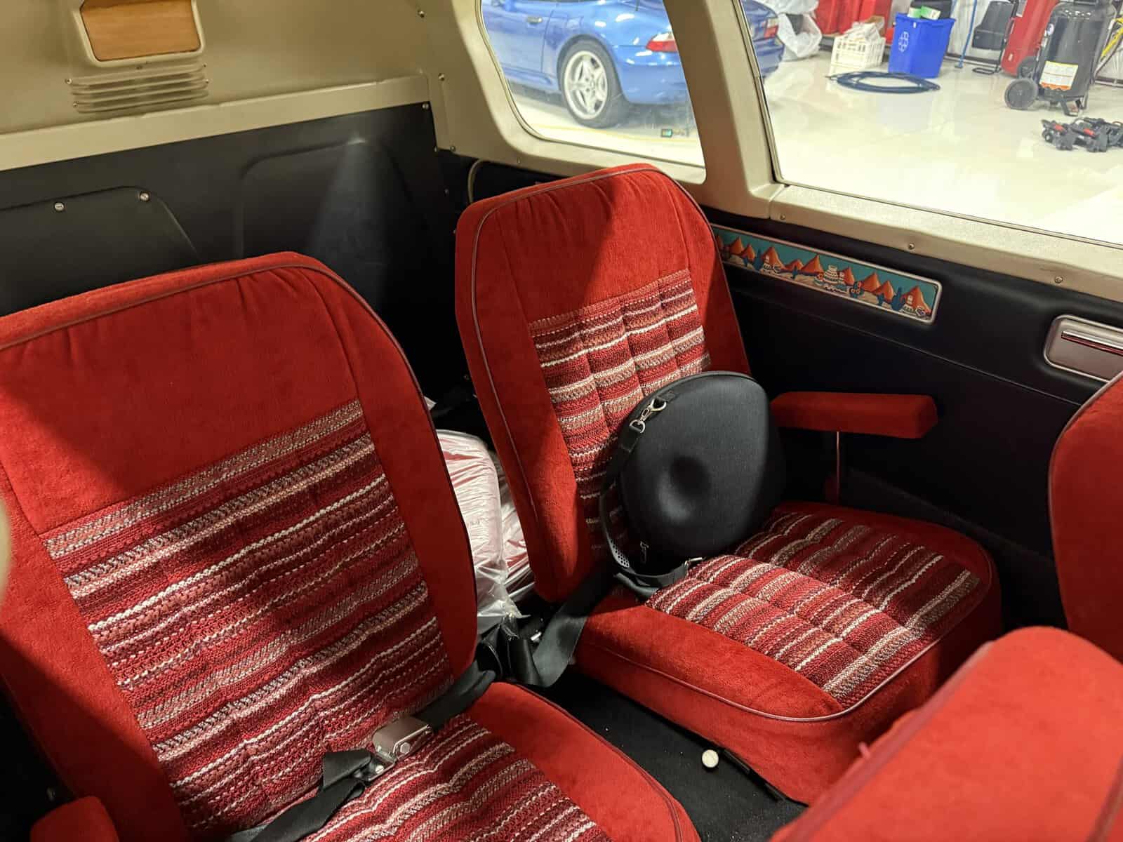 - Red cloth interior seating