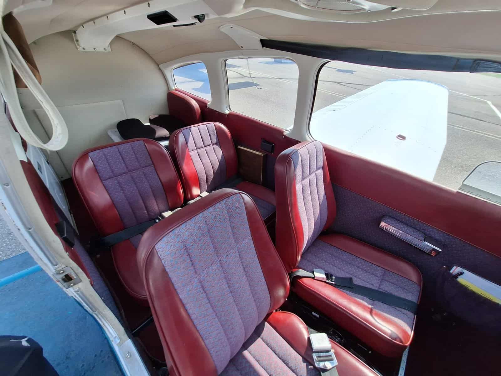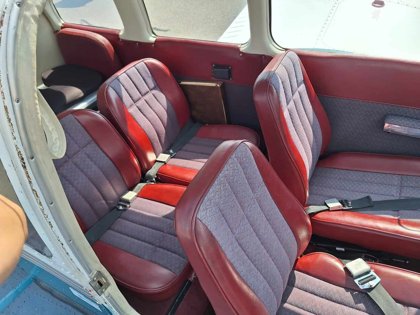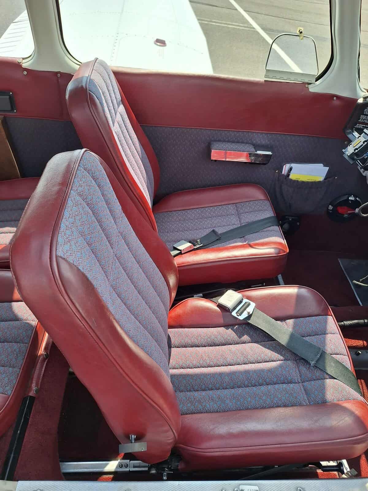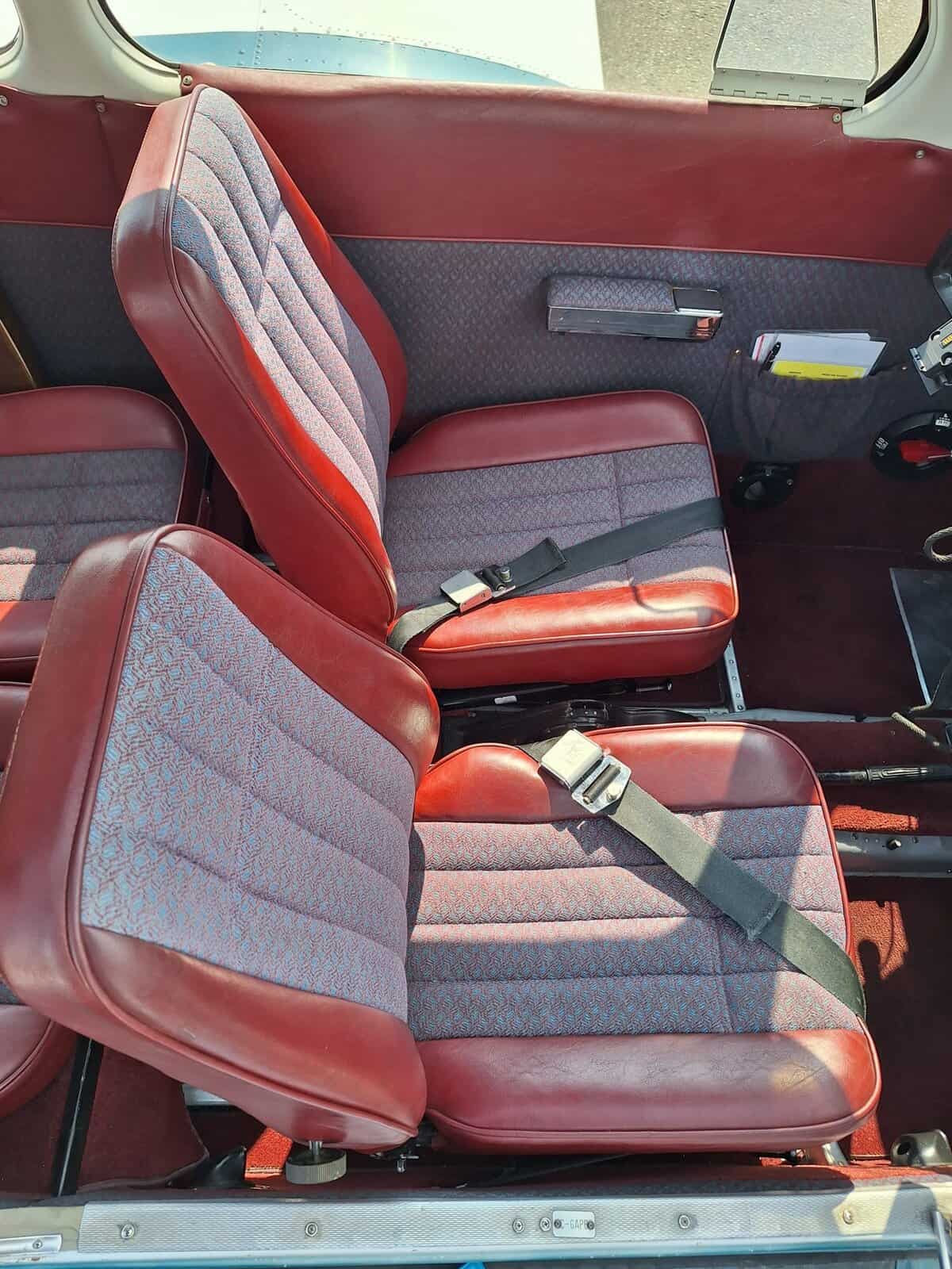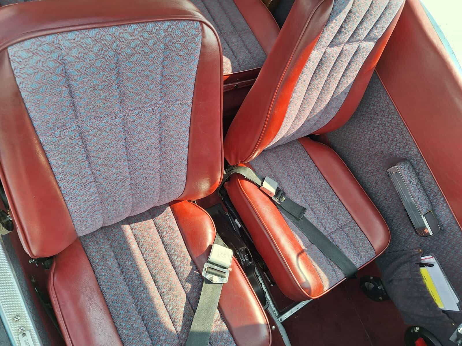 - 4-Space Interior. Burgundy with Teal and Burgundy Cloth Seat Inserts. Quick Folding and Removable Rear Seats. Includes a Fifth Seat Cushion in Same Colour.