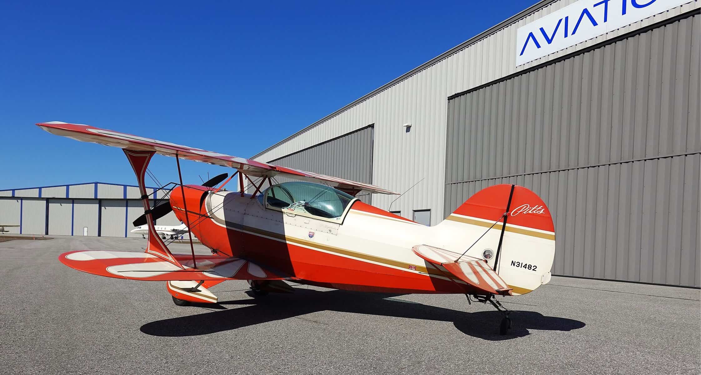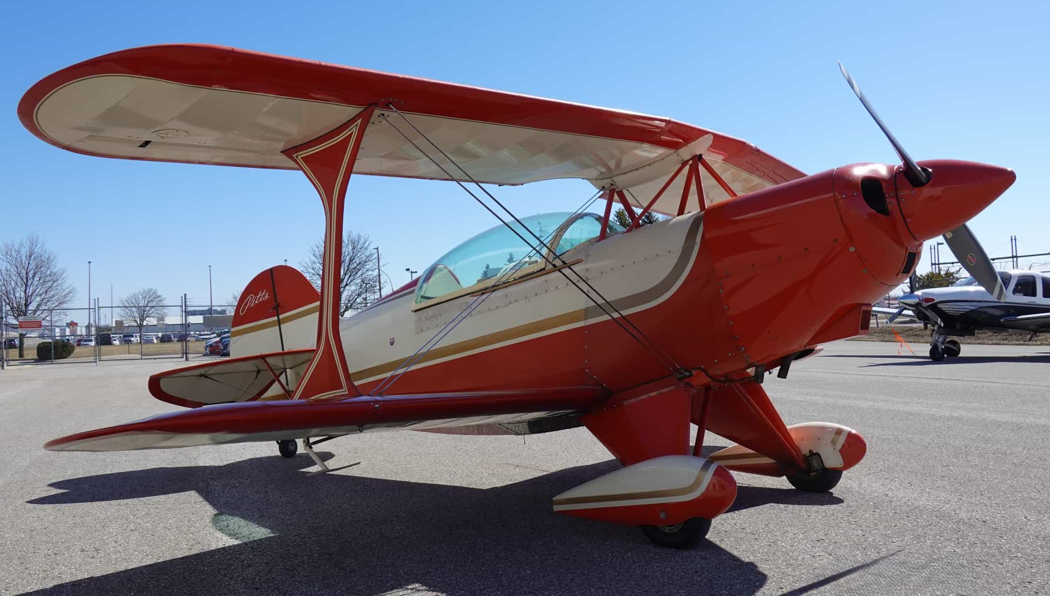 This PITTS S-2A, is a commercial built aircraft by Aerotek and is part of the legendary Pitts Special series of aerobatic biplanes by designer Curtis Pitts. The Pitts Special set the industry benchmark for aerobatic aircraft. In 1967, Pitts developed the two-seat S-2 trainer version. Max speed 210 mph 2,500 ft/min capable of unlimited aerobatics with a +6/-3 g Smoking airplanes tank and system (removable).