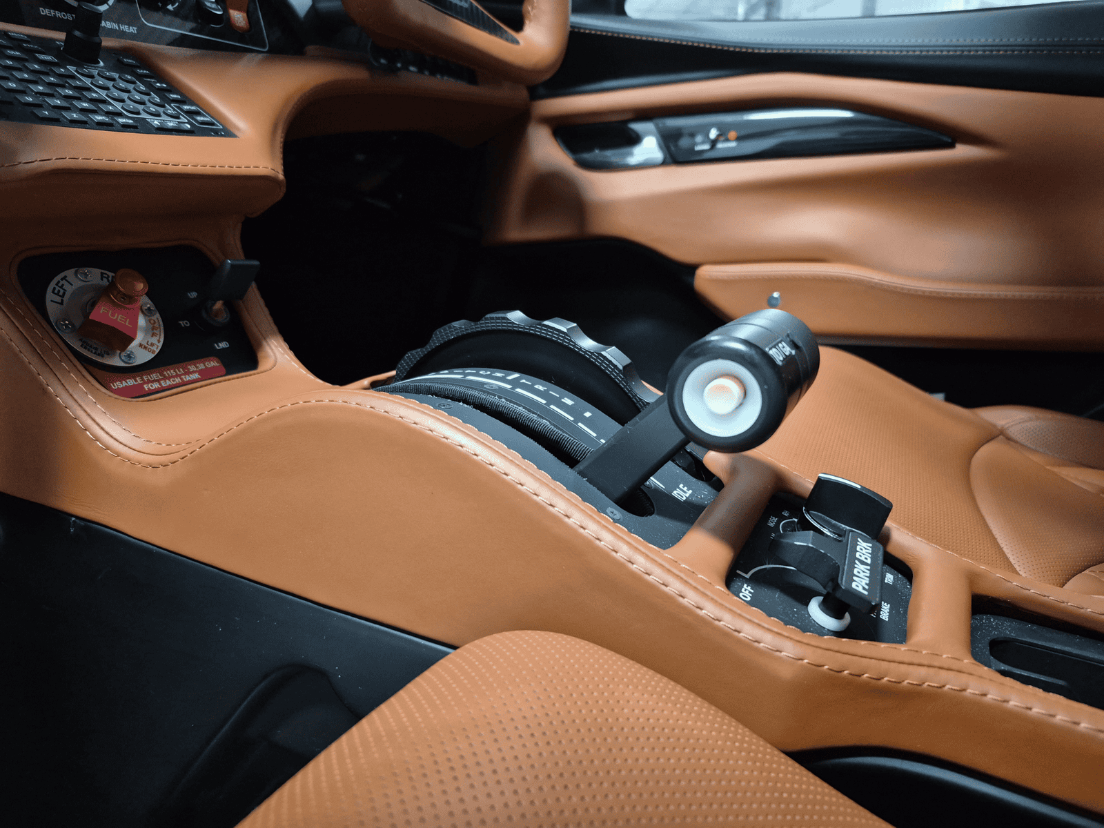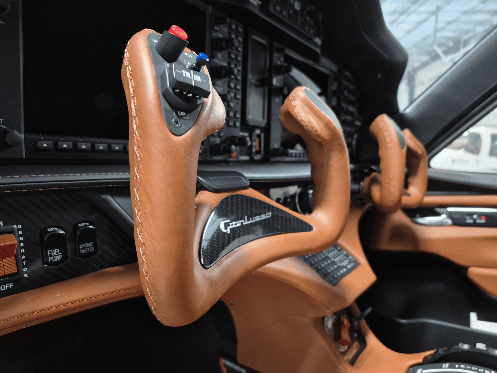 - 4-Place Premium Leather Interior Seating, Carbone/Peru Combination with Peru (6274) Leather Seats, Leather-Wrapped Yoke, and Asian Rust (35814) Stitching, and Carbone Black Panel.